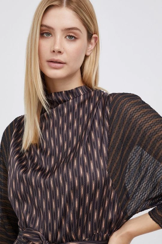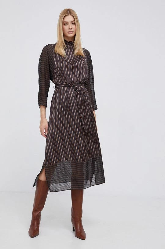Φόρεμα από τη συλλογή Sisley. Ανοιχτό μοντέλο από ύφασμα με σχέδια.