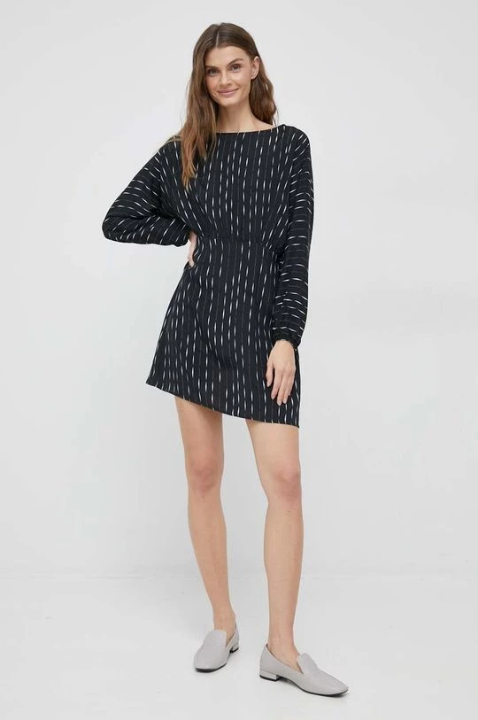 Φόρεμα από τη συλλογή Sisley. Ανοιχτό μοντέλο από από ύφασμα με σχέδια.