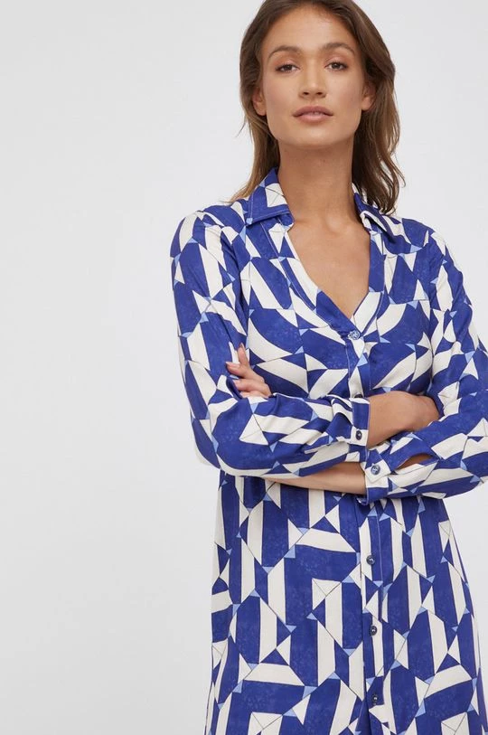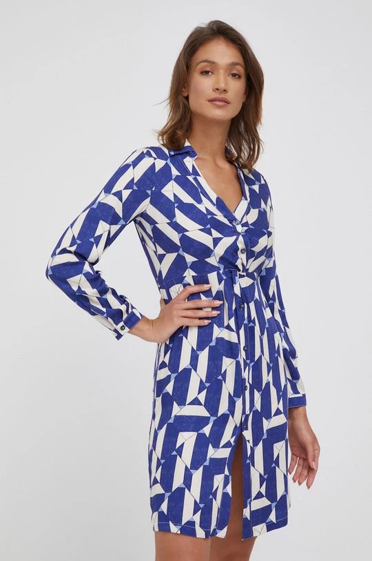 Φόρεμα από τη συλλογή Sisley. Ανοιχτό μοντέλο από από ύφασμα με σχέδια.