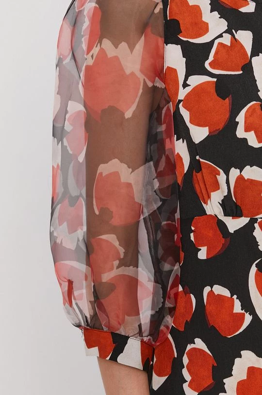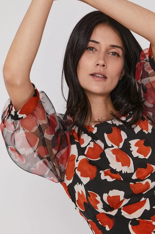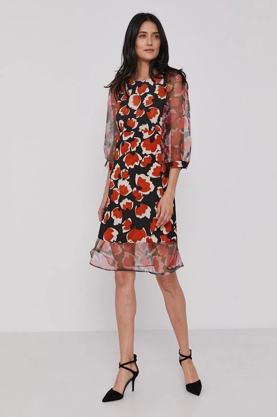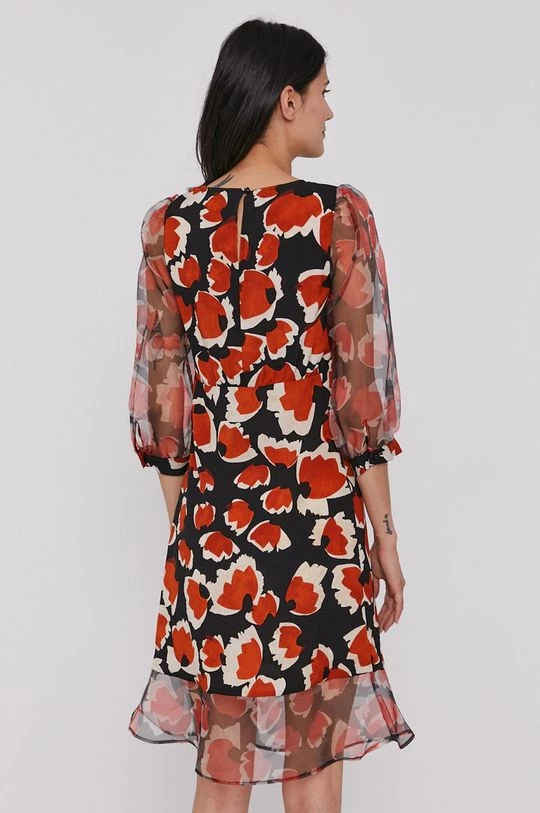 Φόρεμα από τη συλλογή Sisley. Ανοιχτό μοντέλο από ύφασμα με σχέδια.