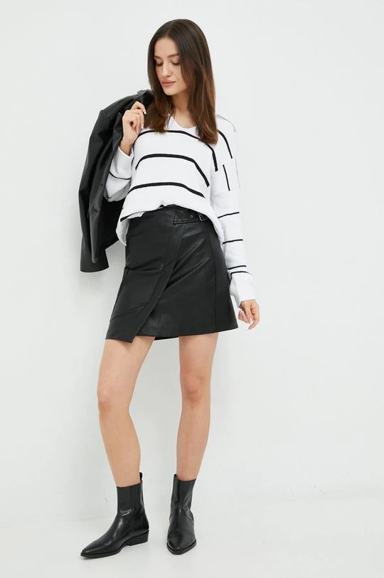 Φούστα από τη συλλογή Sisley. Model o ευθεία τμήμα, από από απομίμηση δέρματος.