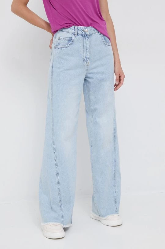 Tζιν παντελόνι από τη συλλογή Sisley σε στυλ wide leg υψηλή μέση. Μοντέλο από λείο τζιν.