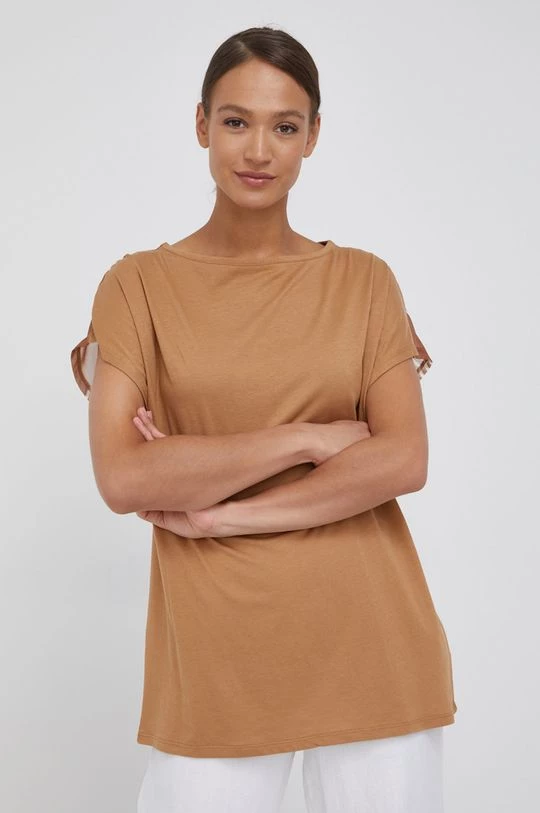 Μπλουζάκι από τη συλλογή Sisley. Μοντέλο από συνδυασμό πλεκτού και υφάσματος.