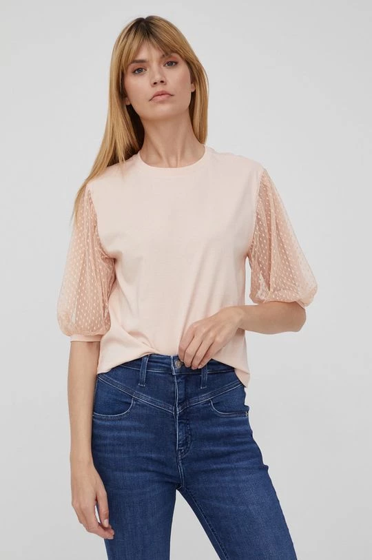 Μπλουζάκι από τη συλλογή Sisley. Μοντέλο από ελαφρώς ελαστικό πλεκτό.