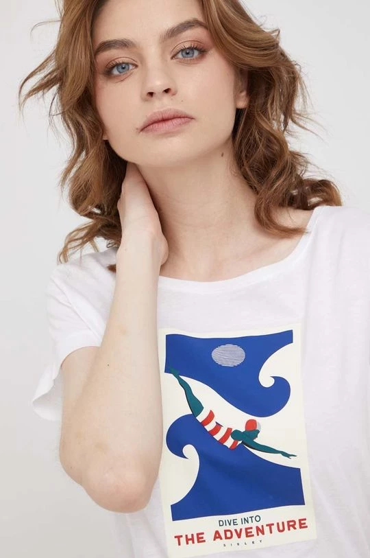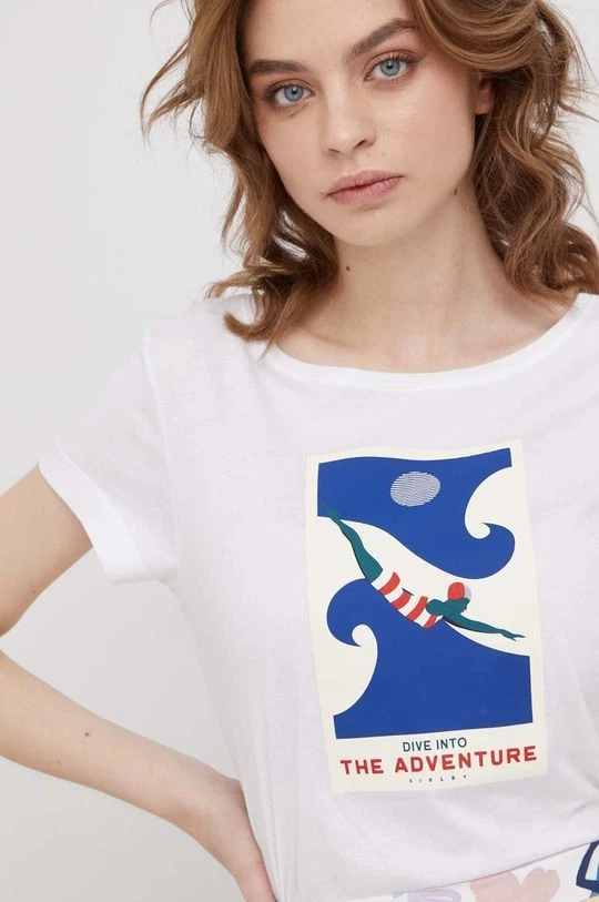Μπλουζάκι από τη συλλογή Sisley. Μοντέλο από από πλεκτό με εκτύπωση.