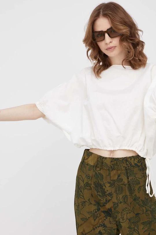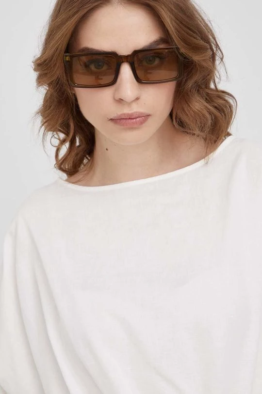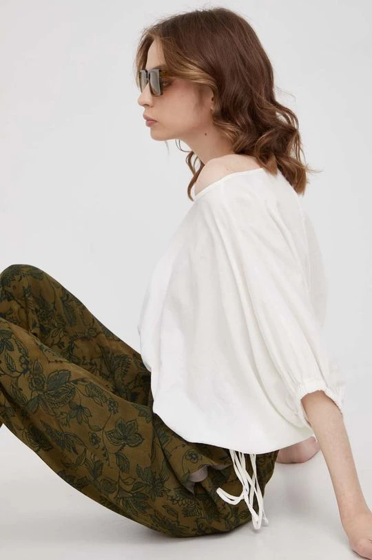 Μπλουζα από τη συλλογή Sisley. Μοντέλο από από λείο ύφασμα. Παρέχει στρογγυλό ντεκολτέ.
