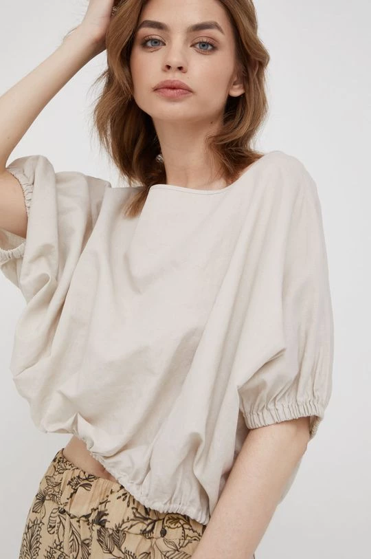 Μπλουζα από τη συλλογή Sisley. Μοντέλο από από λείο ύφασμα. Παρέχει στρογγυλό ντεκολτέ.