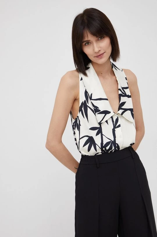 Μπλουζα από τη συλλογή Sisley. Μοντέλο από από ύφασμα με σχέδια. Παρέχει μυτερό ντεκολτέ.