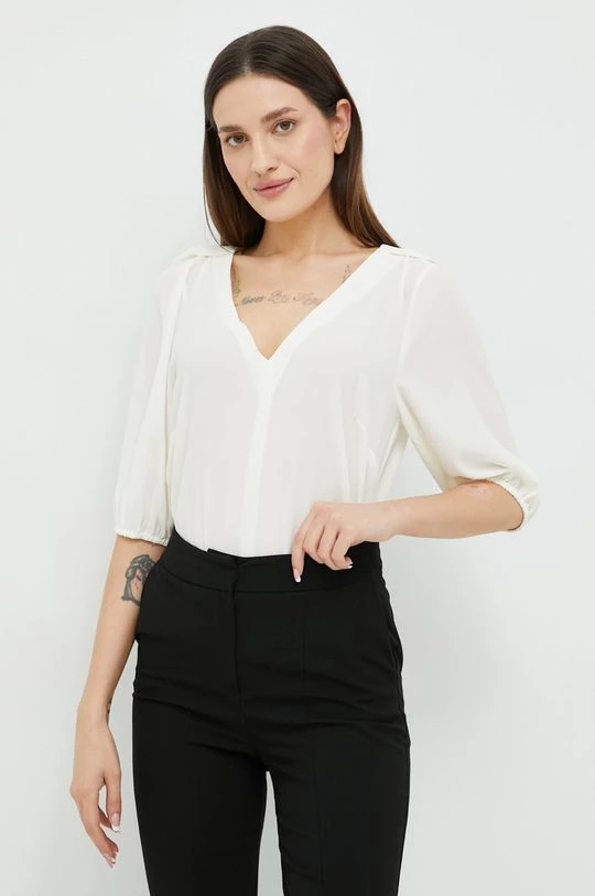 Μπλουζα από τη συλλογή Sisley. Μοντέλο από από λείο ύφασμα. Παρέχει μυτερό ντεκολτέ.