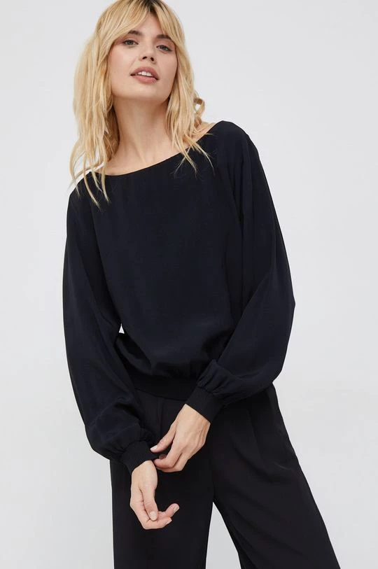 Μπλουζα από τη συλλογή Sisley. Μοντέλο από ελαφρύ ύφασμα. Παρέχει ντεκολτέ τύπου βάρκα. Λεπτό, ευχάριστο στην αφή ύφασμα.