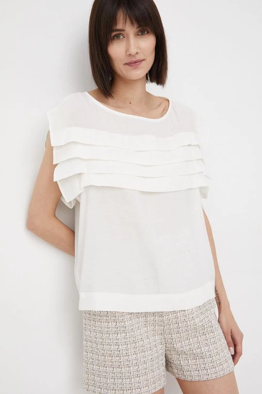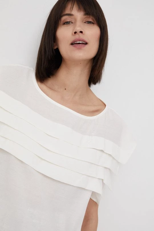 Μπλουζα από τη συλλογή Sisley. Μοντέλο από από λείο ύφασμα. Παρέχει στρογγυλό ντεκολτέ.