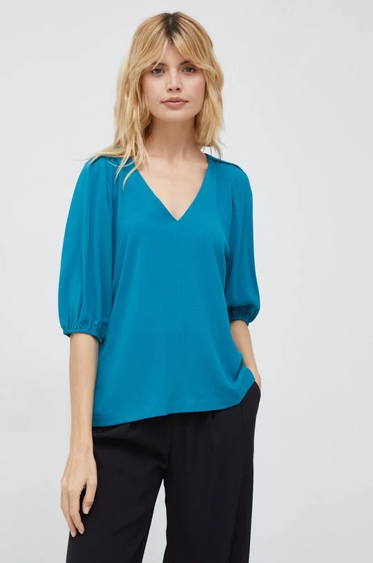 Μπλουζα από τη συλλογή Sisley. Μοντέλο από λείο ύφασμα. Παρέχει μυτερό ντεκολτέ.