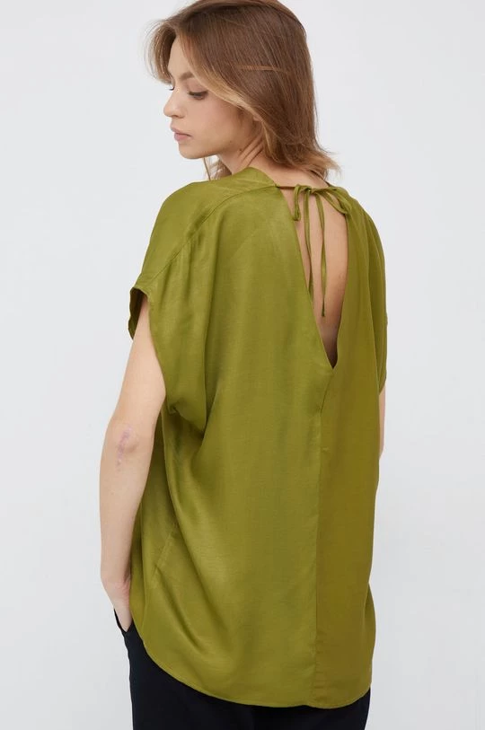 Μπλουζα από τη συλλογή Sisley. Μοντέλο από από λείο ύφασμα. Παρέχει μυτερό ντεκολτέ.