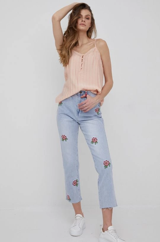 Μπλουζα από τη συλλογή Sisley. Μοντέλο από από λείο ύφασμα. Παρέχει κουμπωμένο ντεκολτέ.