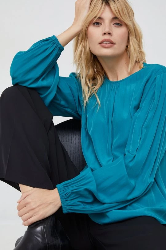 Μπλουζα από τη συλλογή Sisley. Μοντέλο από ελαφρύ ύφασμα. Παρέχει στρογγυλό ντεκολτέ. Λεπτό, ευχάριστο στην αφή ύφασμα.