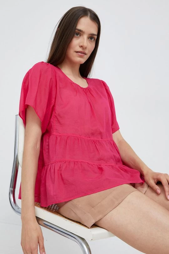Μπλουζα από τη συλλογή Sisley. Μοντέλο από βαμβακερό ύφασμα. Παρέχει στρογγυλό ντεκολτέ. Ελαφρύ ύφασμα, σχεδιασμένο για πιο ζεστές εποχές.